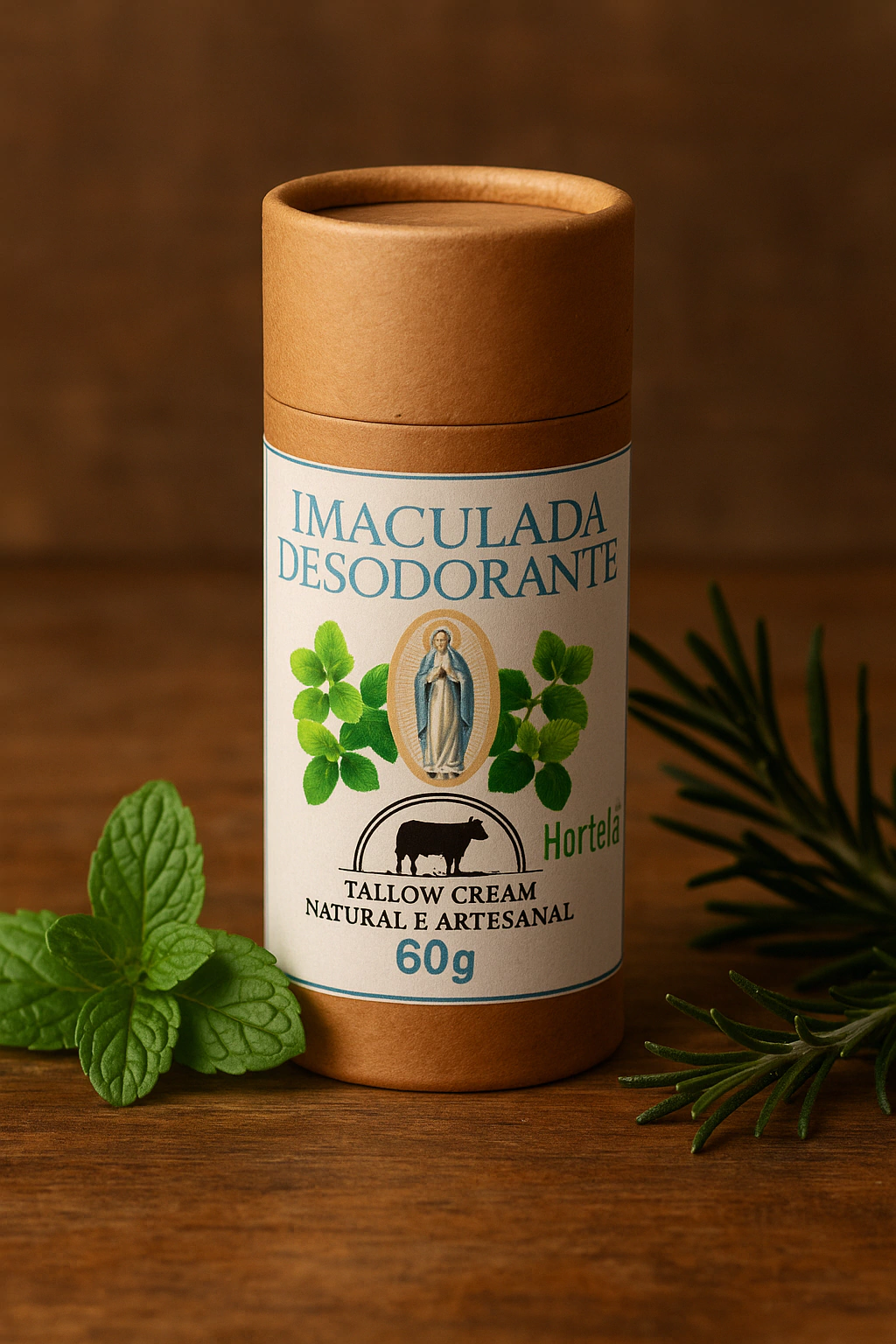 Bovine Tallow (Sebo Bovino), Cera Alba (Cera de Abelha), Zea Mays Starch (Amido de Milho), Sodium Bicarbonate, Zinc Oxide, Mentha Piperita Oil (Hortelã-pimenta), Rosmarinus Officinalis Leaf Oil (Alecrim), Tocopherol (Vitamina E).